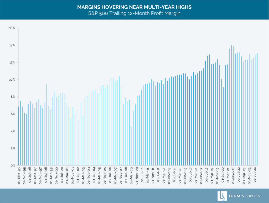 In our view, tariffs remain the most significant risk to margins across industries. Furthermore, we believe achieving meaningful margin expansion from here will be challenging given the already elevated levels of corporate profitability.