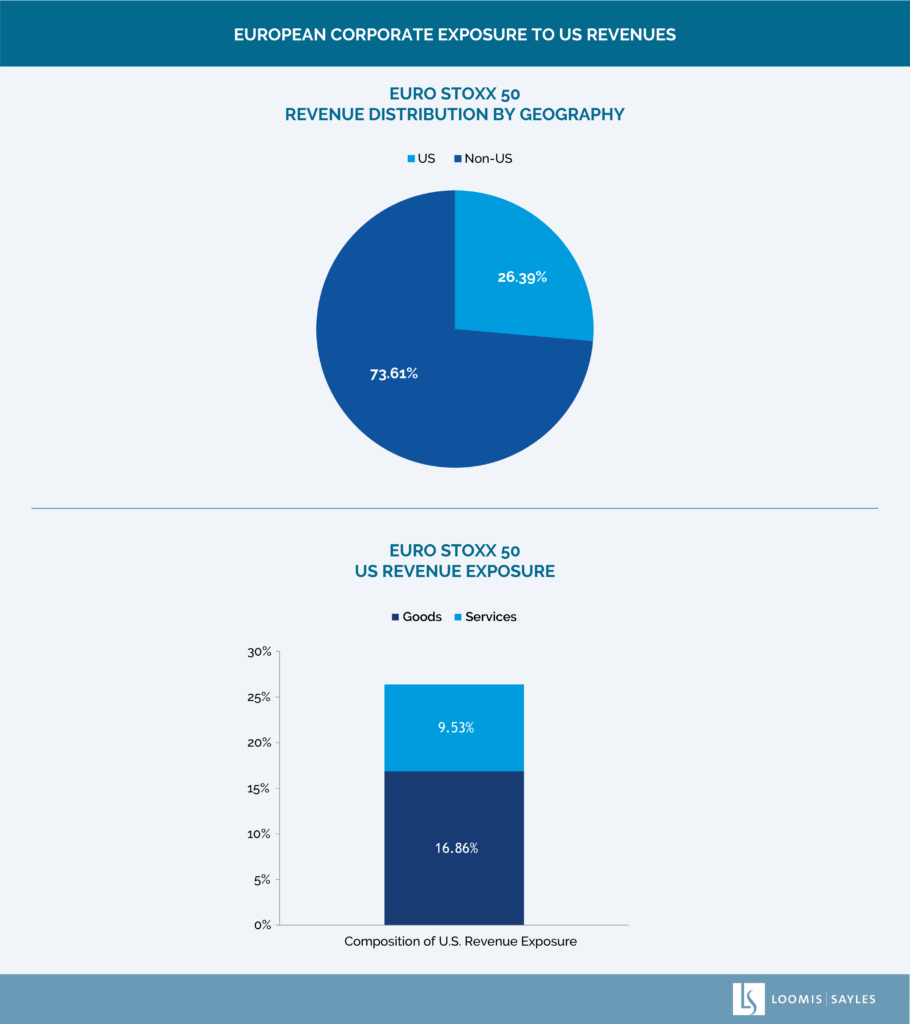 Policy uncertainty looms large. Markets are grappling with the potential impact of a new US administration, particularly around tariffs and geopolitical tensions, which we believe could ripple through global trade and impact inflation dynamics. Direct exposure of European corporates to US tariffs appears manageable due to their smaller proportion of revenues tied to exported goods to the US (6.6%),[i] but certain sectors like luxury goods and autos are more vulnerable to weakening consumer demand in China.