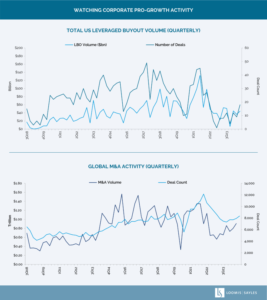 Chart sources: LBO data sourced from S&P Capital IQ as of 30 September 2024; M&A data sourced from Bloomberg as of 30 September 2024.