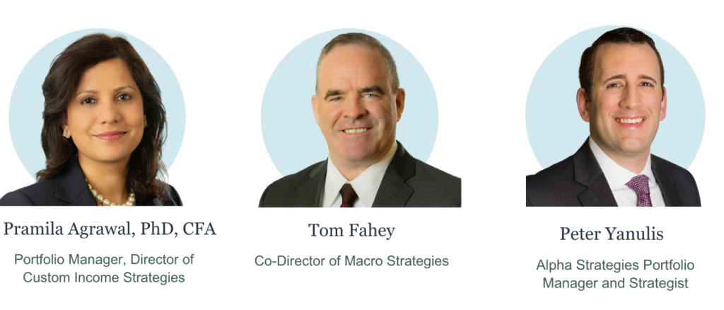 An uncertain growth landscape does not mean a lack of growth potential. Pramila Agrawal, PhD, CFA, Portfolio Manager, Director of Custom Income Strategies, Tom Fahey, Co-Director of Macro Strategies, and Peter Yanulis, Alpha Strategies Portfolio Manager and Strategist, see plenty of areas of potential short- and long-term opportunity.