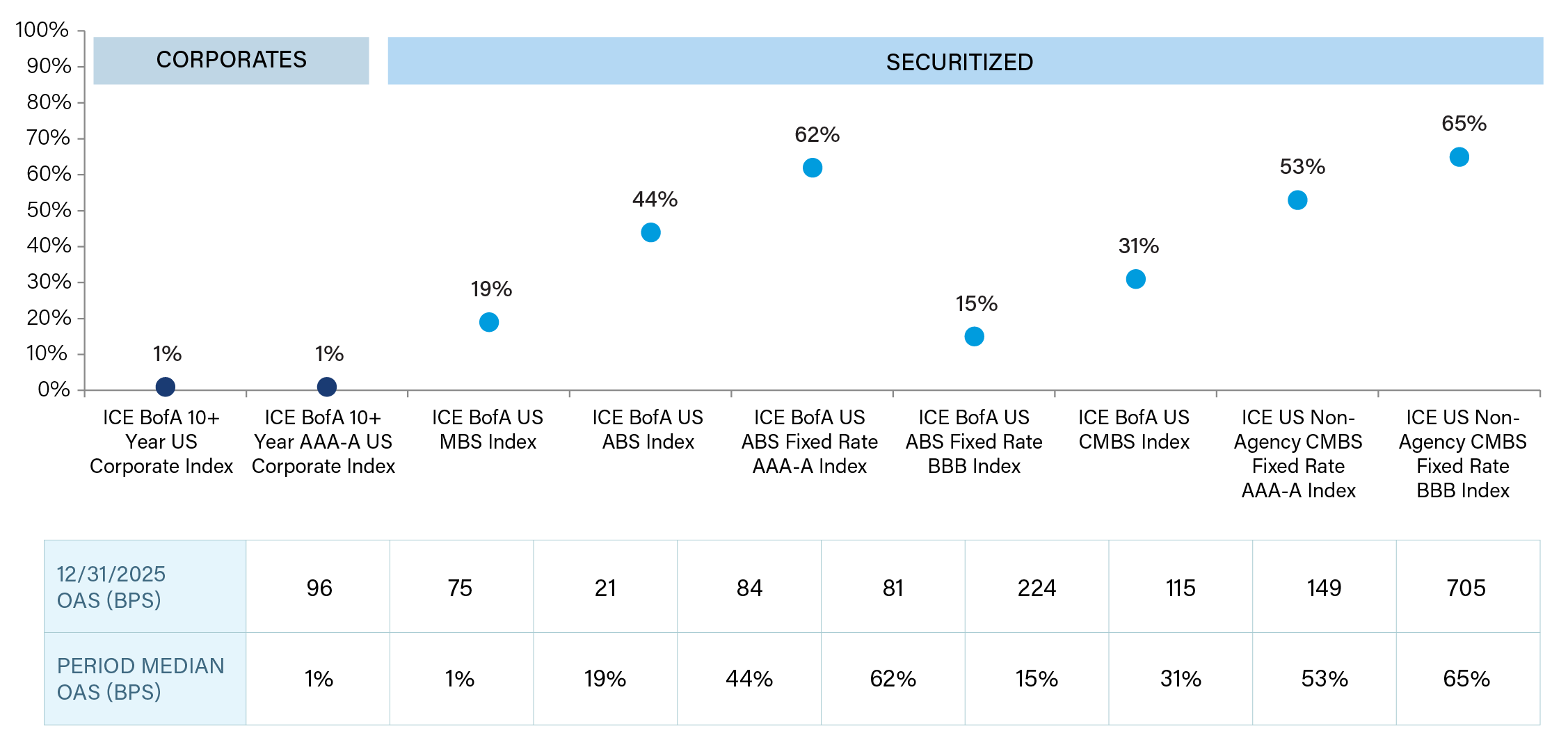 Source: ICE index data. Percentile Rank and Median OAS are based on data from 12/31/2009 through 12/31/2025.