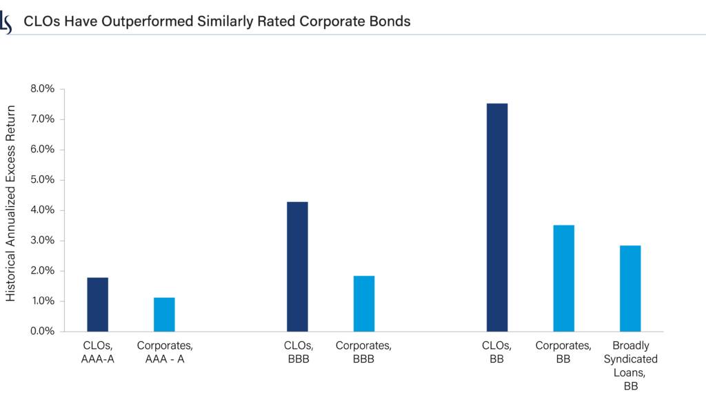 CLOs are backed by actively managed, highly diversified pools of loans, and benefit from structural protections that help insulate CLO tranches from idiosyncratic loan-level risk that direct loan investors face.