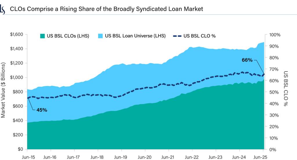 CLOs are one of two scalable asset classes for investors seeking floating-rate exposure to corporate credit; the other instrument is broadly syndicated loans (BSLs). While both invest in the same underlying loan universe, CLOs are vehicles that invest in BSLs and sell tranches of debt and equity, each offering distinct risk-return profiles to investors. This surge in CLO demand has fueled expansion of both the CLO market and the underlying BSL market. The BSL market itself has grown from $800 billion to roughly $1.5 trillion over the past decade, with CLOs growing from 45% of the BSL market to now more than 65%.[ii] In our view, this shift underscores the importance of understanding the drivers behind CLO growth and the tradeoffs between investing in CLOs versus direct exposure to bank loans. Hereās what we think investors should know.