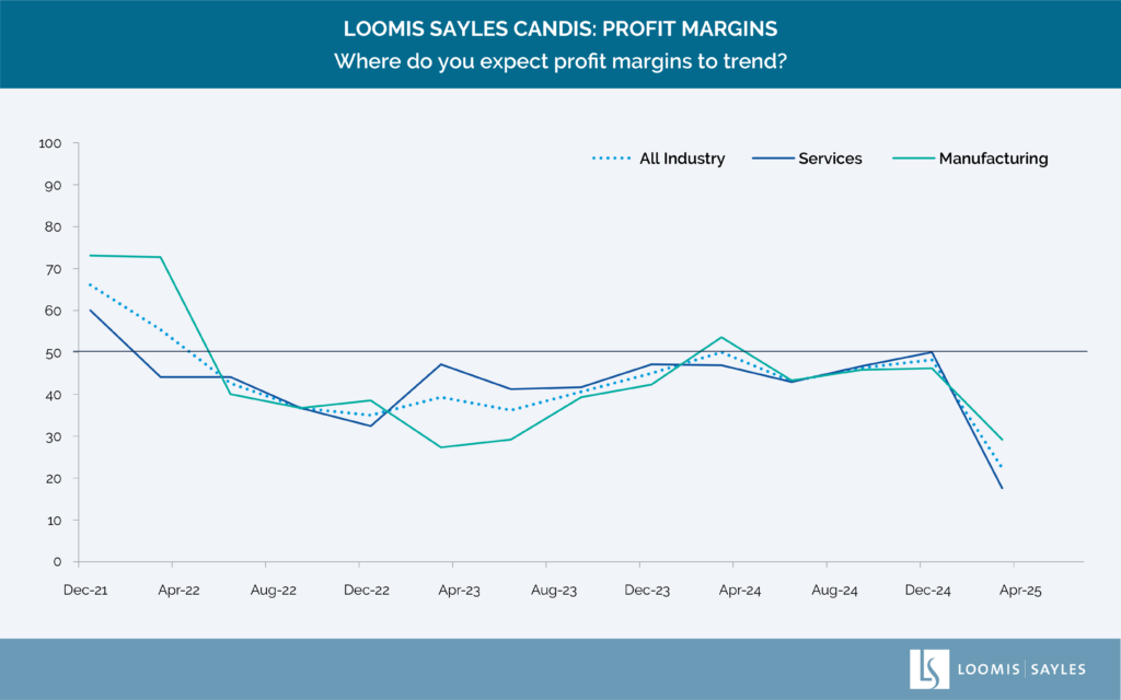After several quarters of resilience, our latest survey of Loomis Saylesā credit analysts yielded its weakest results since it launched in 2021. Conducted amid early Aprilās market volatility and tariff announcements, the survey revealed a concerning shift in our credit analystsā expectations for key corporate indicators like costs, pricing power and margins. The findings suggest a deteriorating outlook for corporate health, which has been a key underpinning of the US economic expansion.