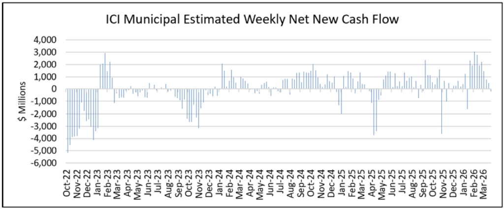 - The flow of investor money into municipals demonstrated a positive trend in Q1, with weekly muni mutual fund flows remaining primarily positive and with separately managed account (SMA) and ETF demand remaining robust as well. Mutual fund net inflows totaled approximately $16-17 billion in the quarter.
