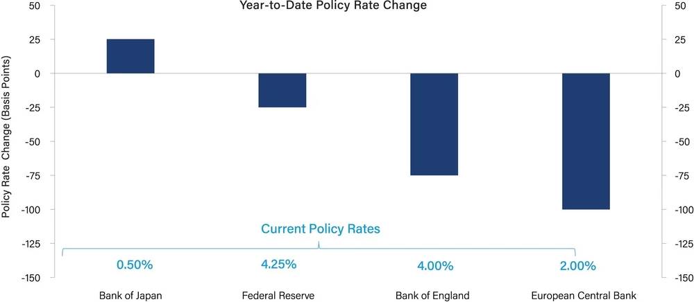 The Fed could cut twice more in 2025, while Japan and European central banks appear on hold.