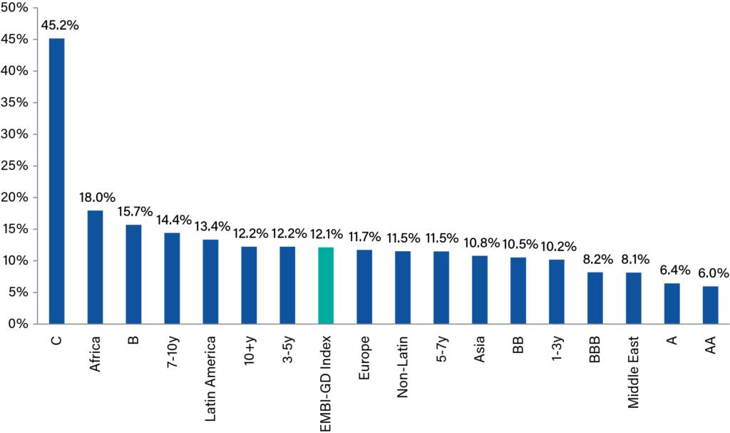 J.P. Morgan EMBI-GD index returns, split by sectors, quality profiles and tenors