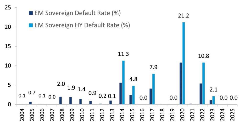 EM SOVEREIGN OVERALL AND EM SOVEREIGN HY DEFAULT RATES (%)