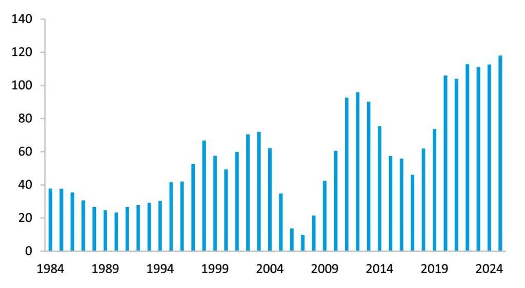 For background context, the 2022 cycle was triggered by pandemic-related shocks and the fallout from the war in Ukraine, which pushed many EM countries into debt distress or default. Over 100 countries were considered “critically indebted” in 2022, with frontier economies dependent on tourism and energy imports especially vulnerable. Several EM sovereigns, including Suriname, Zambia, Ghana, and Sri Lanka, underwent significant restructurings between 2022 and 2024. Innovative instruments, such as state-contingent debt (SCDIs) and macro-linked bonds, were increasingly used. These tied repayments to variables, such as commodity revenues or GDP growth, helping align incentives and speed up negotiations.