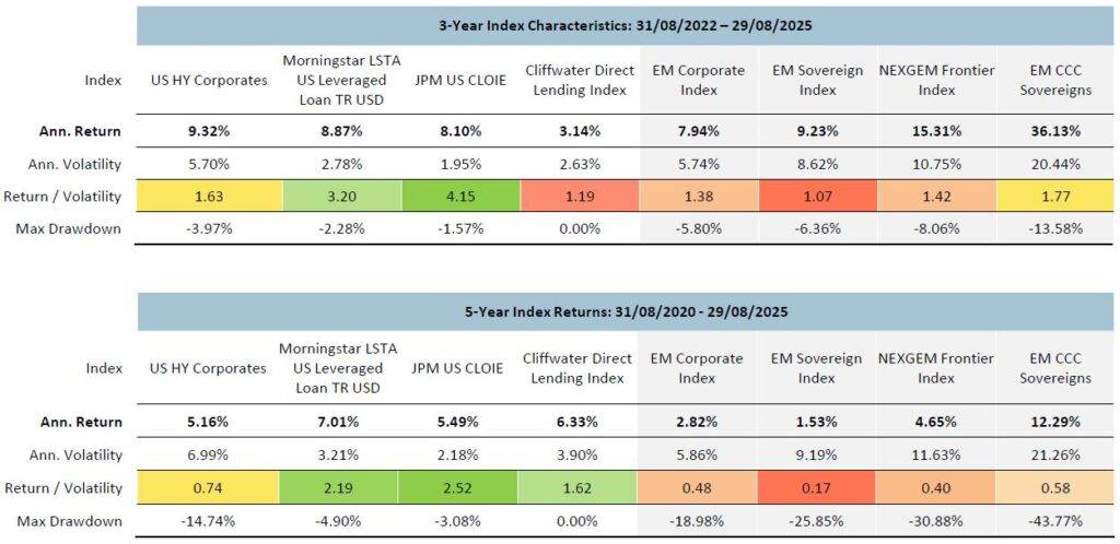 High yields are compensation for taking on additional risks in the post-2022 restructuring regime; as a result, frontier bonds have outperformed both EM and DM credit over the past three and five years ending 29 August 2025.